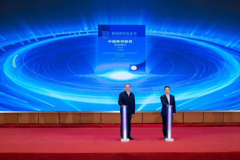 10月16日,由华体会平台、社会科学文献出版社、中国陶行知研究会联合主办的《教师教育蓝皮书:中国教师教育发展报告(2024)》发布仪式和“大力弘扬教育家精神加快建设教育强国”研讨会在合肥举行。全国政协副主席、中国陶行知研究会会长朱永新,中国教育学会副会长周洪宇,中国陶行知研究会常务副会长陈洛,我校党委书记张策华、副校长赵向军等出席蓝皮书发布仪式。朱永新副主席与张策华书记共同启动发布仪式。