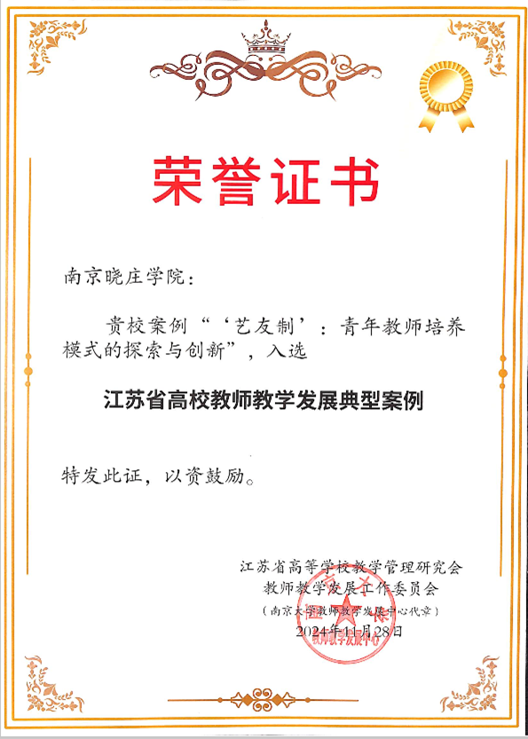 学校实施“人才强校”战略,落实立德树人根本任务,大力弘扬教育家精神,以“捧着一颗心来、不带半根草去”的大爱精神为引领,努力培养造就新时代高素质专业化的人才队伍。一年来,学校强化高水平人才引育,优化人才发展服务体系,深化考核评价机制改革,人才队伍建设成果获得突破性提升,成功获评“全国优秀教师”1人,新增获评江苏省“333工程”第二层次培养对象1人,江苏省“教学名师”1人,南京市“教学名师”2人,江苏省级优秀教学团队1个,其他省市级人才24人,在同类型同层次高校中名列前茅。学校人才发展服务工作《“艺友制”:青年教师培养模式的探索与创新》成功入选江苏省高校教师教学发展典型案例。