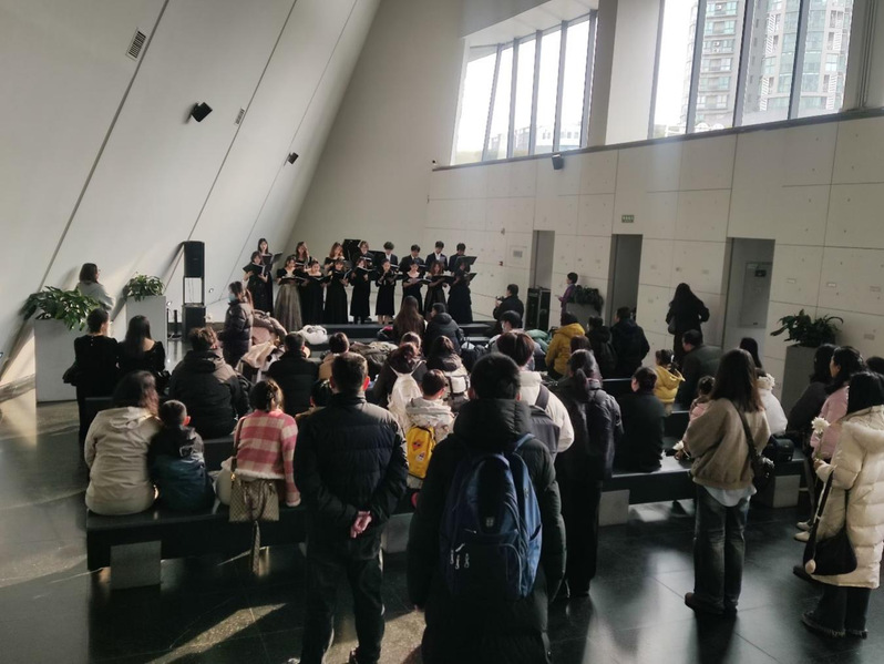 1月11日,实践团成员20余名同学来到侵华日军南京大屠杀遇难同胞纪念馆尾厅,以钢琴演奏、小合唱等形式向来纪念馆参观的群众开展文艺演出。纪念馆对演出给予充分肯定,同时希望能加强合作,常态化开展文艺演出活动,用艺术的力量传递和平之声;1月12日,实践团成员奔赴鼓楼区凤凰街道华阳佳园社区,开展校社共建文艺演出。这是“红色文艺轻骑兵”实践团连续第三年深入社区基层开展红色文艺演出,通过打造“行走的思政课堂”,努力促成文艺服务群众,让“社区小舞台”成为文艺先锋的最前沿。