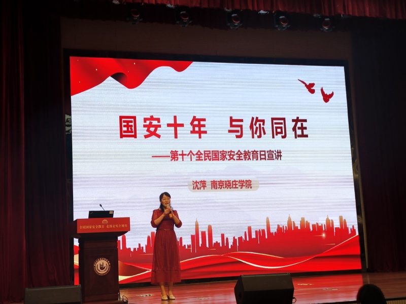 4月11日,在南京市委政法委、南京市委国安办和南京市国家安全人民防线建设领导小组办公室主办的驻宁高校“新风采”杯国家安全主题宣讲比赛中,我校推荐的辅导员沈萍老师以“国安十年 与你同在”为题,与30所高校师生同台竞技。