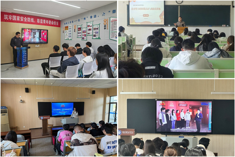 4月15日,美术学院、商学院等组织学生集中观看“千万师生同上一堂国家安全教育课”,保卫处、电子工程学院共同邀请警务室张俊警官为学生举办“筑牢国家安全防线 彰显青年使命担当”安全教育讲座,环境科学学院苏鹏宇老师为学生举办了“敌对势力的间谍活动与我防范措施”专题讲座,美术学院、文学院、环境科学学院、旅游与社会科学学院、信息工程学院、人工智能学院等结合实际,开展了丰富多彩、形式各异的安全教育活动。