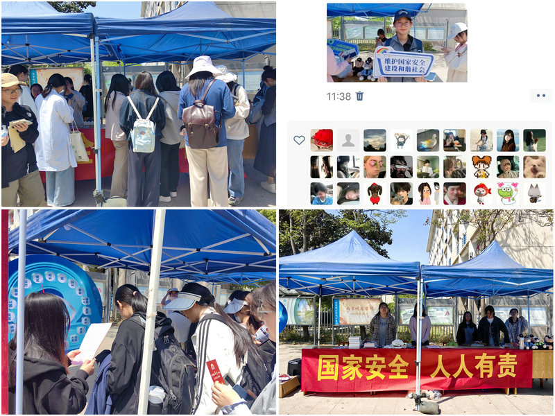 4月15日,保卫处在南食堂开展“国家安全,人人有责”主题宣传活动。活动围绕“全民国家安全教育,走深走实十周年”这一主题,通过知识展板、现场发放宣传材料、互动答题等环节现场宣传国家安全知识、内容涵盖政治安全、保密安全、反间防谍、反宗教渗透、反诈骗、网络安全等领域。为了提高学生的参与热情,还通过幸运大转盘、“国家安全无看客,你我都是践行者”自拍限时集赞赢公仔等趣味游戏吸引学生积极参与,系统普及总体国家安全观。据不完全统计,当天共发放各类宣传手册800余份,参与学生近千人。