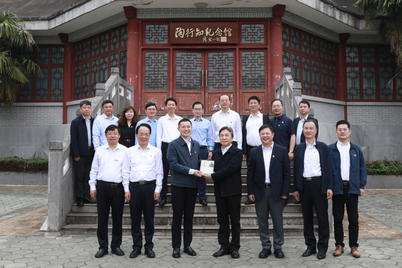 5月15日,南京中医药大学党委书记乔学斌、校长程海波率领领导班子和党委理论学习中心组成员,莅临我校晓庄校区师德教育馆开展实地研学,旨在深入学习领会习近平总书记关于师德师风建设的重要论述,从陶行知精神中强化党性修养,弘扬教育家精神。华体会平台党委书记张策华、党委副书记易永建,相关职能部门负责人参加了活动。