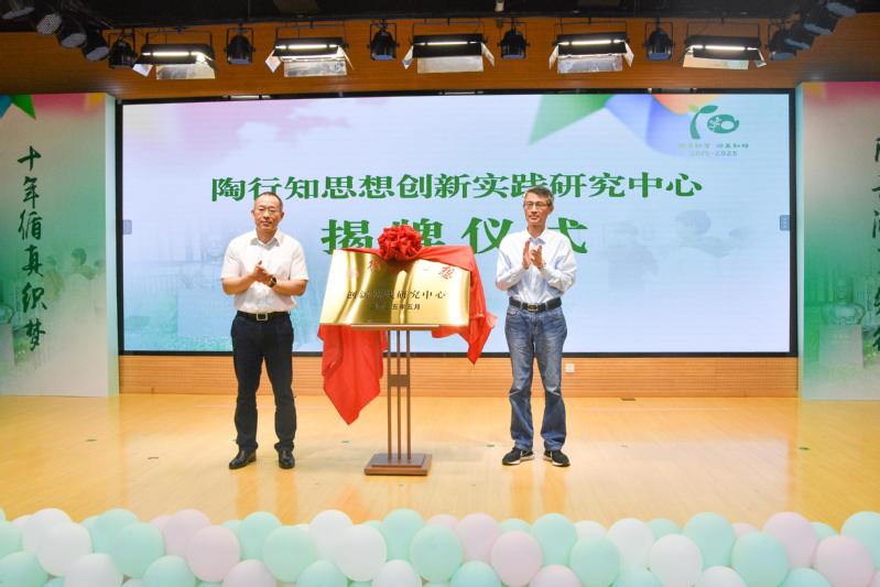 张四海和肖大明共同为“陶行知思想创新实践研究中心”揭牌,标志着幼儿园将进一步在区域内推动教育家思想的创新实践,结合本土化资源为打造建邺区学前教育特色名片贡献积极力量。