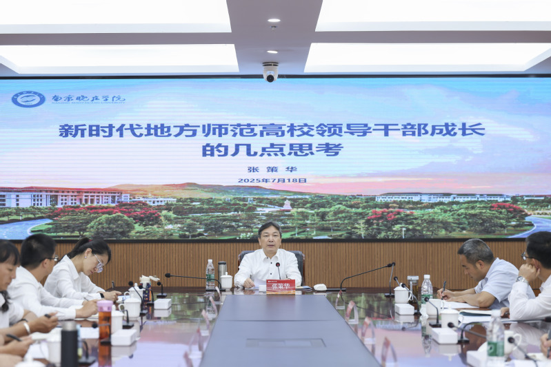 张策华在致辞中对丽江师院表示热烈欢迎,他介绍了晓庄近年来事业发展情况,描绘了学校“传承行知精神、建设百年晓庄”的奋进蓝图。张策华就高校领导干部能力建设,提出“三看”的殷切期望:一是以更高站位“向上看”,自觉将学校发展融入国家战略和区域经济社会发展大局;二是以更大格局“向外看”,看清楚内外形势变化、教育发展规律、面临的机遇和挑战,积极盘活“家底”,做大“家业”;三是以更宽视野“向未来看”,用更长远的眼光来思考和把握学校改革发展的重任,为推动教育强国建设作出新的更大贡献。