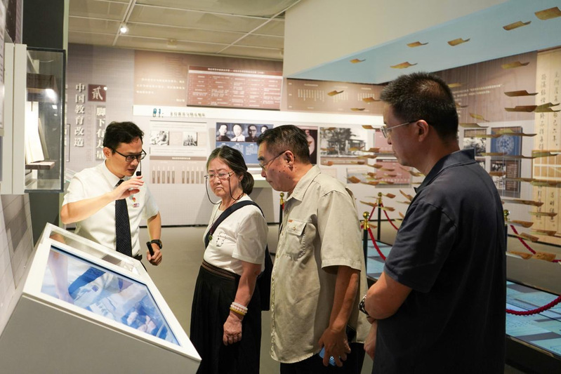 在师德教育馆,董九九女士深入了解父亲的导师——陶行知先生的教育理念、教育志向。陶行知先生致力于中国平民教育、普及教育,积极向国际友人介绍中国的教育困境和抗战形势,吸引国际友人投入中国的教育和抗战工作中,他始终将教育与国家、人民紧密相连。
