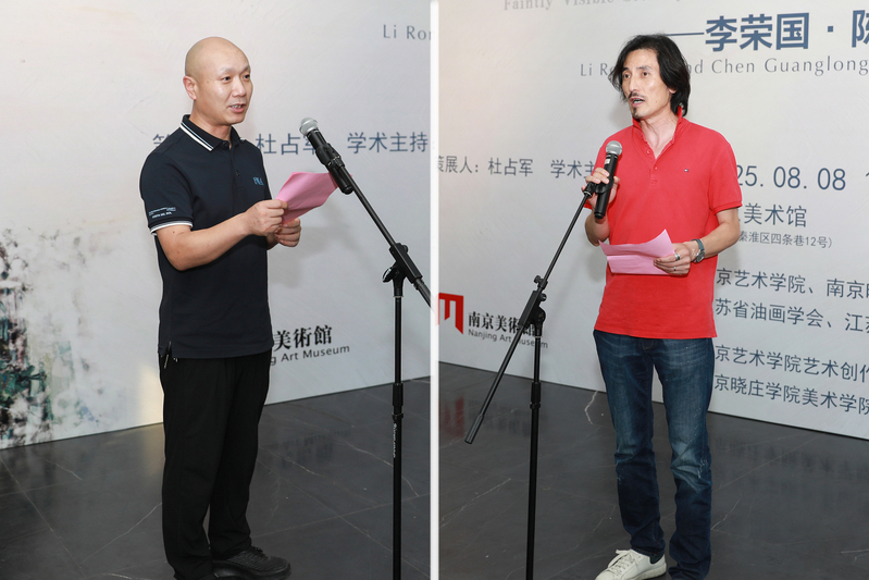李荣国、陈光龙两位个展作者发表答谢辞,他们表示,此次展览是多年创作探索的阶段性总结与艺术思考的分享,意义特殊,并感谢了南京市文联、南京美术馆、所在学校及各协办机构的支持,艺术界前辈和同仁的指导,以及媒体的关注与幕后人员的付出,同时邀请观众走进展厅多提宝贵建议,为未来创作提供养分。