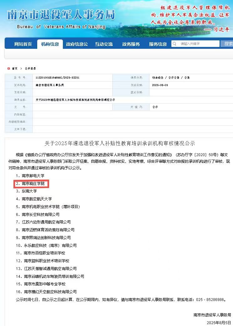 近日,南京市退役军人事务局公布了新一轮退役军人补贴性教育培训承训机构遴选结果,我校教师发展学院联合相关二级学院申报的四个专业全部通过评审,成功获批承训机构资质。