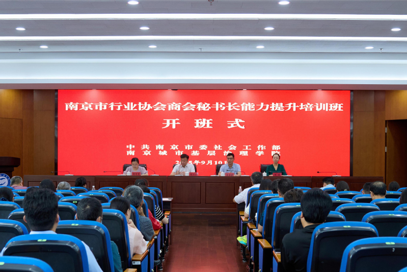 9月10日,全市行业协会商会秘书长能力提升培训班在我校莫愁校区开班。南京市委社会工作部副部长赵小兵、我校党委副书记易永建出席开班式并讲话,全市重点领域行业协会商会秘书长近60人参加培训。