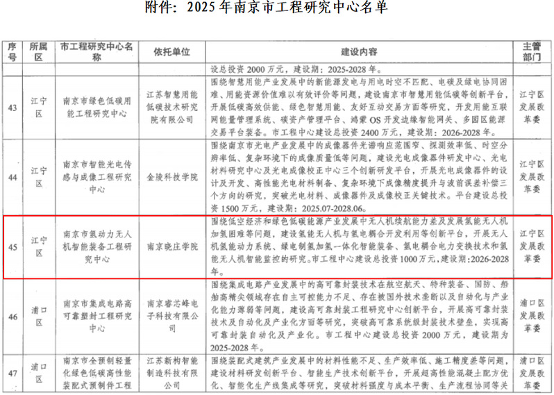 我校“南京市氢动力无人机智能装备工程研究中心”获批南京市工程研究中心